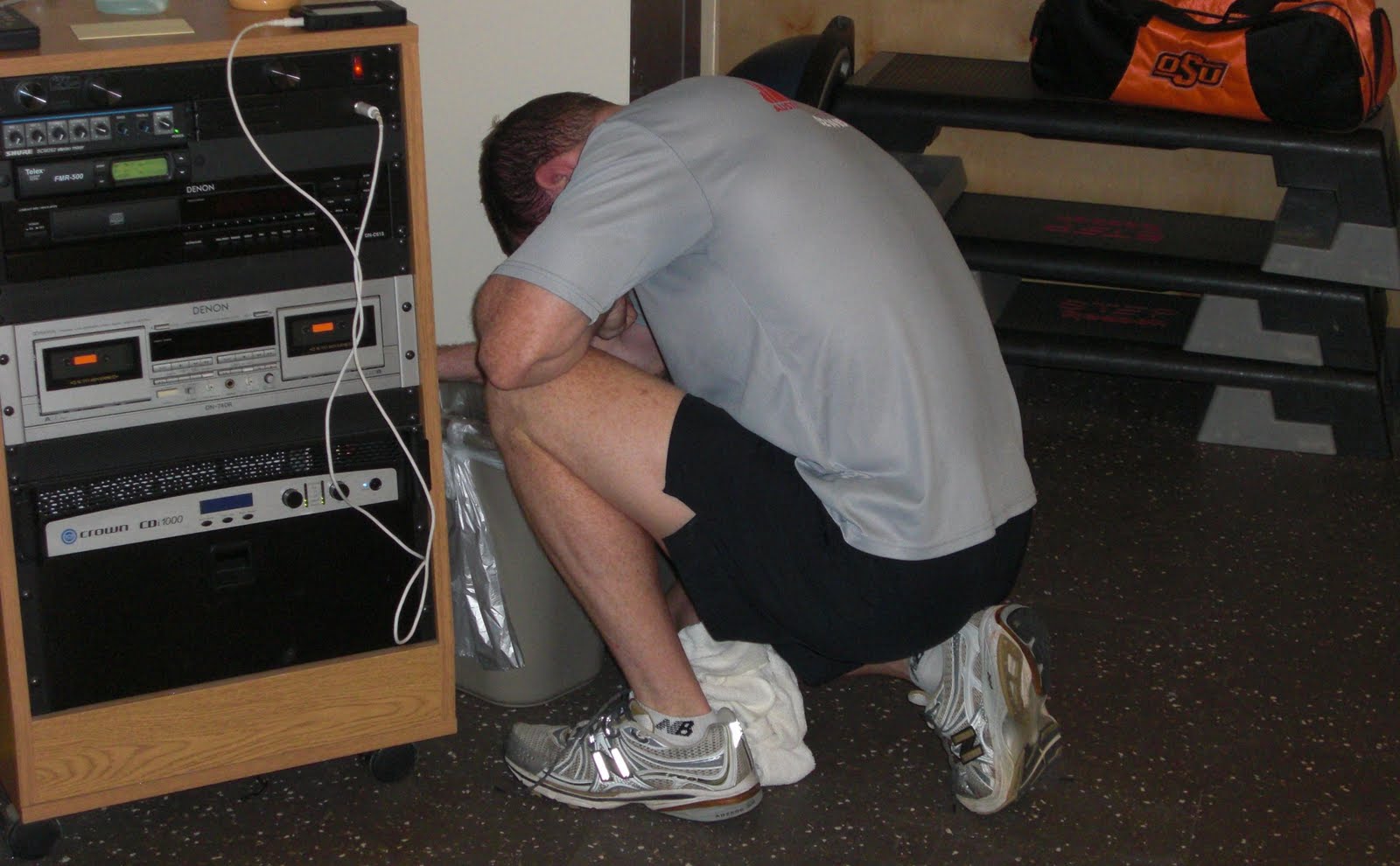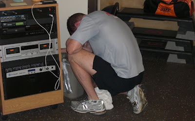 Pair up with a partner. Ten pulls on the rower for distance, each pull initiated once meters stop accumulating on the computer from the previous pull. Then race your partner, each rowing the distance that the partner pulled in the beginning.